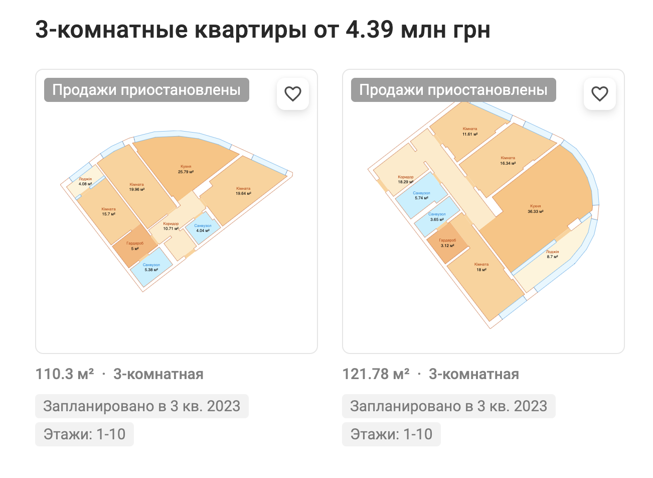 Трикімнатні: 110, 121 м2