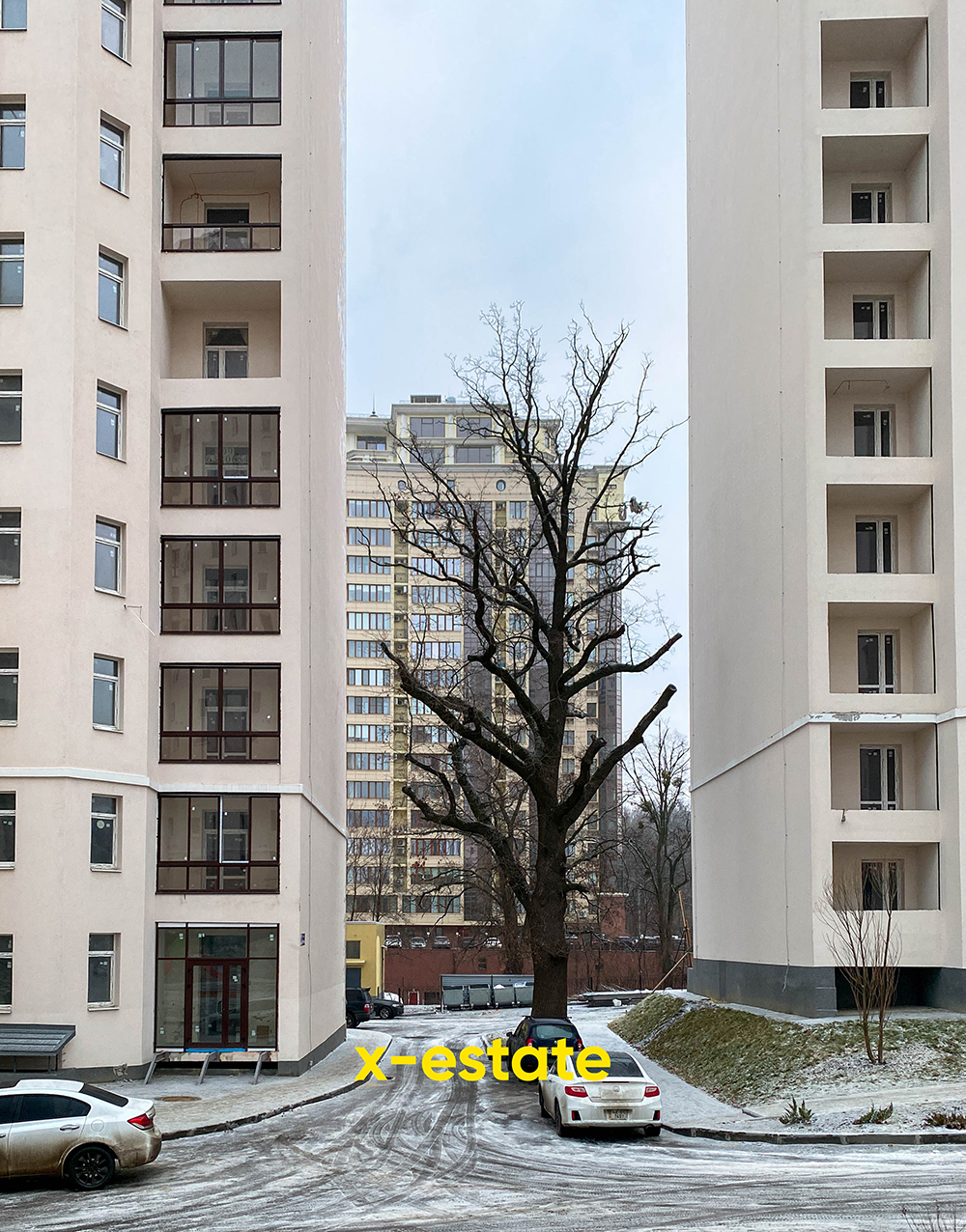 Также здорово, что застройщик оставил пару крупных деревьев. Так двор выглядит живее и экологичнее.