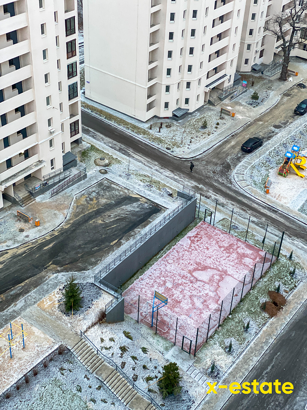 Во дворе есть большая десткая площадка, спортивные площадки для занятий баскетболом, футболом и гимнастикой.
